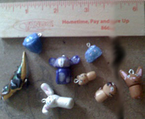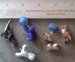 The charms thumbnailed here were done using Cold Porcelain, the clay I had actually been looking for when I started. Currently, only the rat (Inspired by Nintendo's Rattata, from Pokemon) and the Raptor (Inspired by Blizzard's achievement mount 'Venomhide Ravasaur') remain in my possession, as they maintain a particular mark in my skills' improving that I wish to keep with me. Sentimental, perhaps, but I'm the one that made them, so I get to make that decision. If you decide that you want a charm made of the cold porcelain and you contact me for it, I'm asking 5 US dollars in cash for each one, plush shipping. (They will be wrapped in bubble wrap and maybe a small box if I can find it.) Shipping will cost however much it costs for me to get the package to you. Feel free to get a hold of me and ask. |